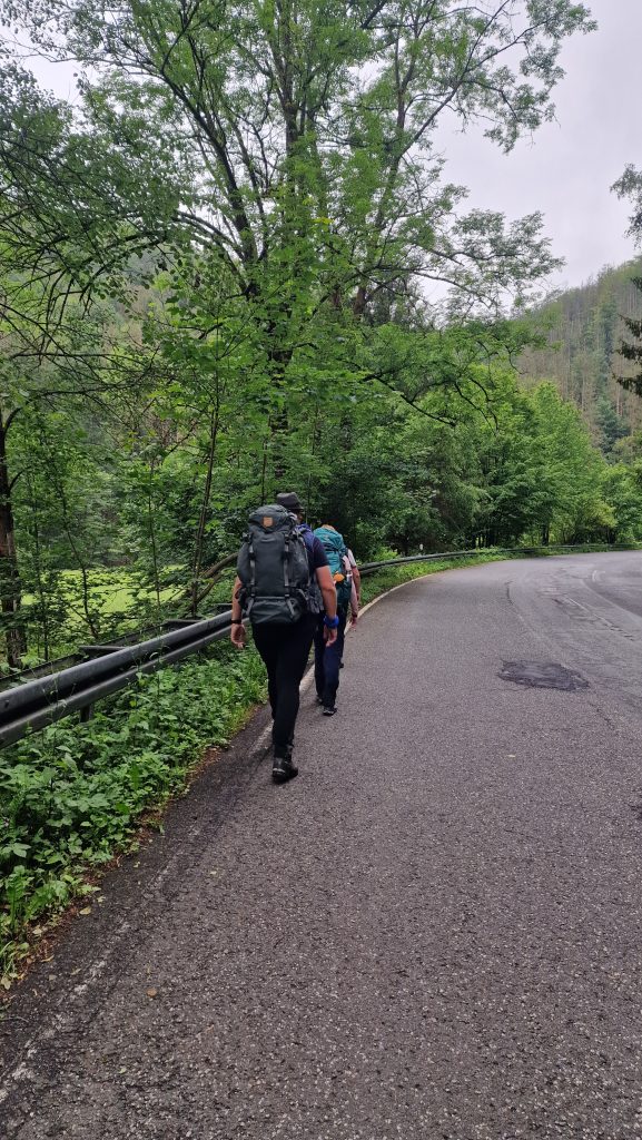 Die vierte Etappe begann entlang der Spree, einem kleinen, ruhigen Fluss. Wir wanderten bergauf, entdeckten ein kleines Bergtheater und genossen die Aussicht, bevor wir Oppach, Neusalza-Spremberg und schließlich Haine erreichten. Der Regen überraschte uns erneut, diesmal so stark, dass wir bis auf die Haut durchnässt waren.